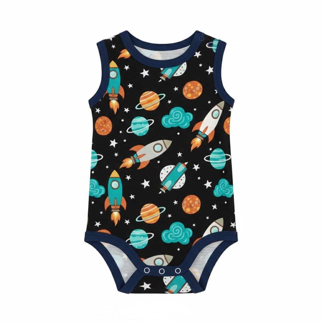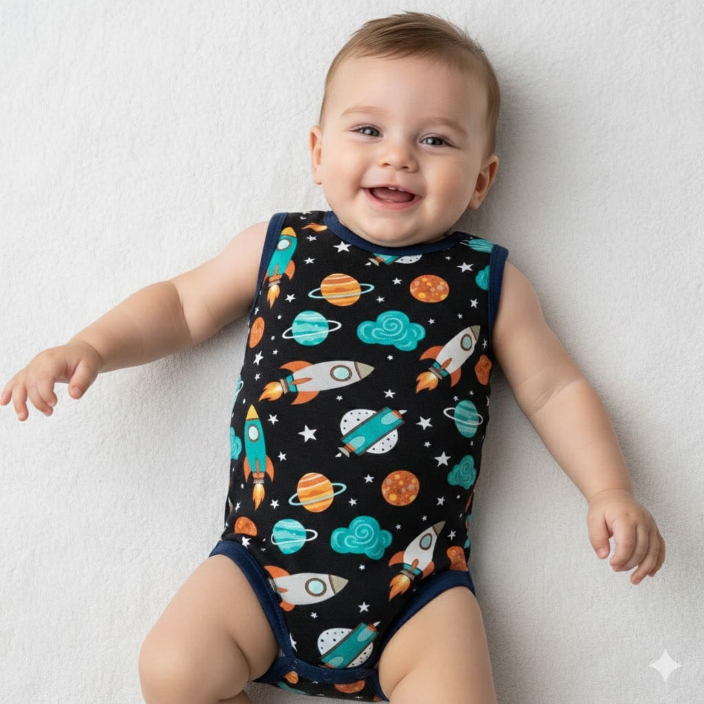 A praktikus patentok megkönnyítik az öltöztetést és a pelenkacserét, így a szülők számára is kényelmes megoldást nyújt. A vidám bolygó minta játékos és egyedi megjelenést ad a ruhadarabnak.