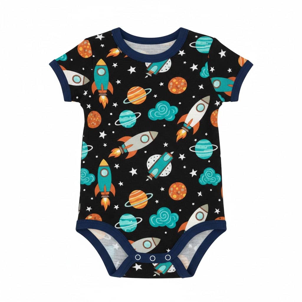 A praktikus patentok megkönnyítik az öltöztetést és a pelenkacserét, így a szülők számára is kényelmes megoldást nyújt. A vidám bolygó minta játékos és egyedi megjelenést ad a ruhadarabnak.
