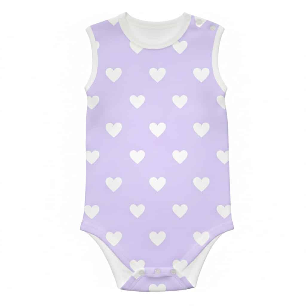 Baba body lila szívek kedves és kényelmes viselet a mindennapokra. A vidám lila szívecske minta különleges megjelenést ad, amit a gyerekek és a szülők is szeretnek.