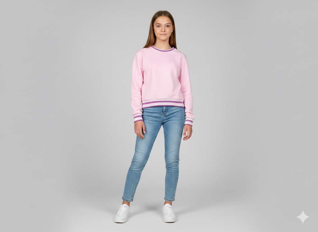 Hosszú ujjú kamasz lány pulcsi kényelmes, mindennapi viseletre. Puha, jól szellőző anyagból készült, amely egész napos komfortot biztosít. Szabása laza, nem akadályozza a mozgást, ideális iskolába és szabadidőre.