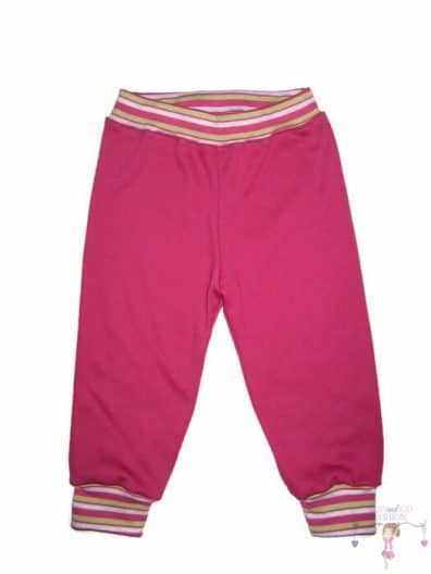 Termék anyaga: Magyar pamut. Összetétele: 70 % pamut+ 30 % poliészter. Lány pamut nadrág kisbabáknak színe: pink, pink-rózsaszín-kiwi-fehér csíkos passzékkal, gumis derékkal. Szívesen ajánljuk a termékhez színben illő, más kategóriában lévő termékeinket.