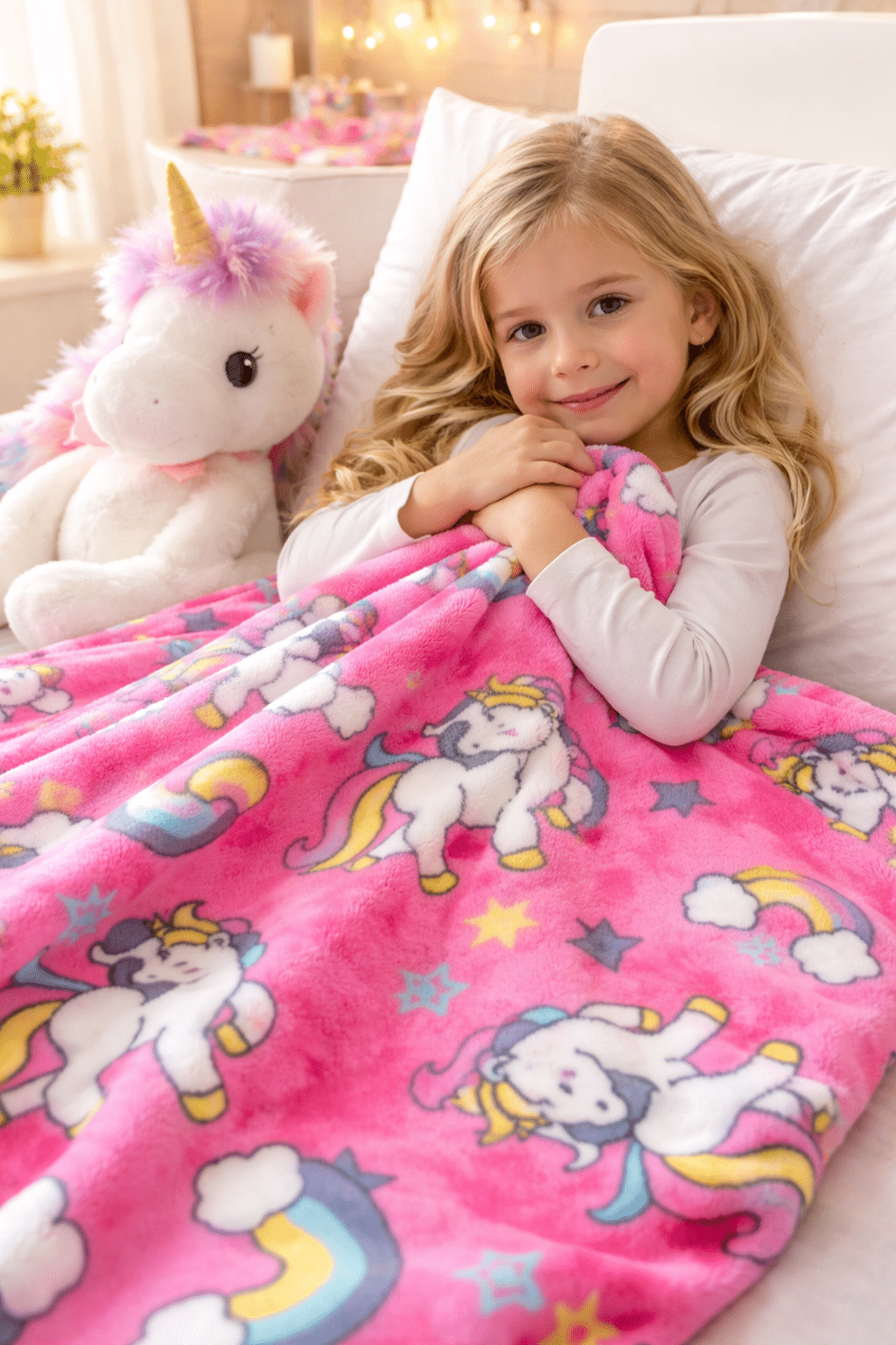 Ez az unikornis mintás babatakaró puha wellsoft anyagból készült, hogy maximális kényelmet és meleget biztosítson a legkisebbeknek. Könnyű, selymes tapintású, mégis jól melegít, ezért ideális alváshoz, babakocsiba vagy utazáshoz.